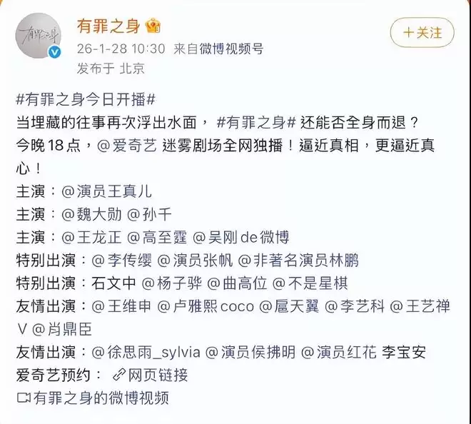 2026 年 1 月 28 日,爱奇艺迷雾剧场开年悬疑剧《有罪之身》空降开播,未及凭借剧情悬念引爆市场,一场突如其来的番位反转风波便占据了全网热议焦点。
