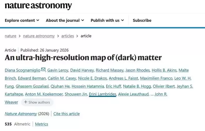 2026 年 1 月 26 日,一项发表于《自然-天文学》(Nature Astronomy)的研究又将人们对暗物质的研究向前推进了一大步:科学家利用美国国家航空航天局(NASA)的詹姆斯·韦布空间望远镜(JWST)数据,绘制出了有史以来分辨率最高、细节最丰富、覆盖范围最广的暗物质和星系图谱。