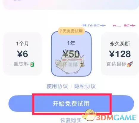 3. 进入会员页面后,直接点击【开始免费试用】按钮即可。