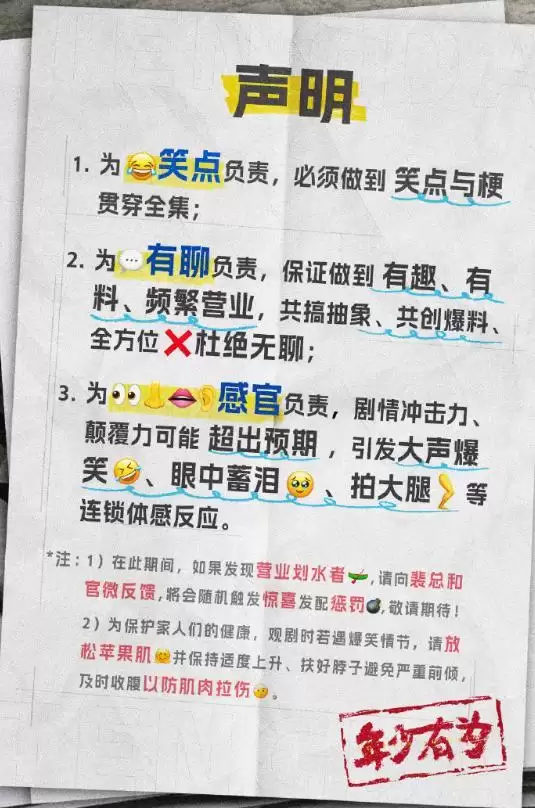 看到最新这3条声明,很多网友都被打动了。网友评论很扎心:“终于有剧组肯用心做喜剧了,再也不用看那些尴尬到抠脚的搞笑片段了。”