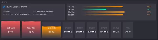 说实话,Area-51给我的最大感受并不是帧数有多高,而是运行时真的非常安静且稳定。毕竟真要说帧数的话,RTX 5080的性能就摆在那里,就算往死里超频,帧数估计也就多个10%,在DLSS 4.5上线后,拼极限帧其实已经没什么意义了,反而是日常使用时的稳定和安静更得我心。