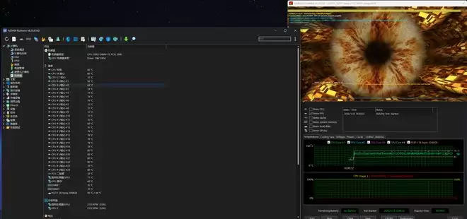 当然,不信邪的小雷最后也是用一些特殊方法测试出了Area-51“火力全开”的表现,在AIDA64单烤FPU+甜甜圈烤GPU的双烤模式伺候下,风扇终于开始全速运转了,噪声值也就44.1db。