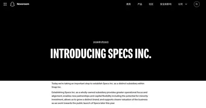 去年6月,Snap向外界透露,计划在2026年推出第六代智能眼镜产品,并强调该产品将更加轻便、小巧,定位于消费级市场。此次独立成立全资子公司Specs,正是这一战略规划的正式落地。