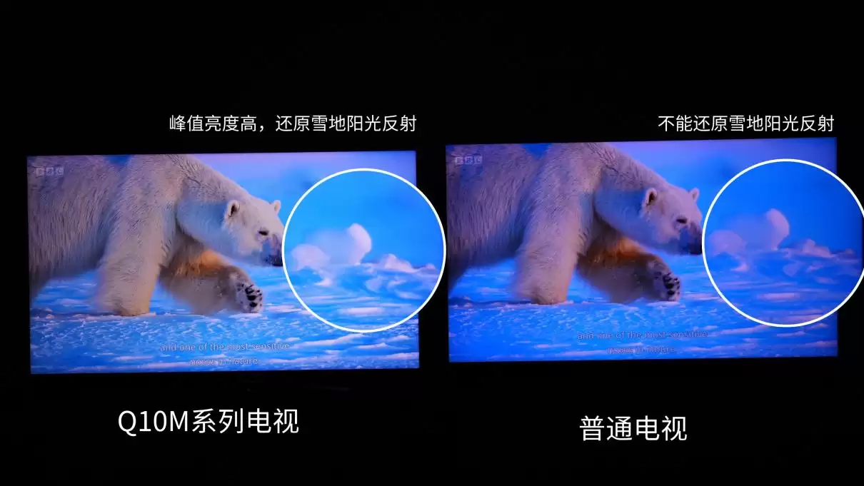 得益于超级量子点与超级蝶翼华曜屏的组合,Q10M全系列实现了100% BT.2020全全局高色域,色彩纯净稳定、不串色,冰雪赛场的通透质感与微妙层次都能被精准捕捉。最高8052个万象分区,一区顶多区带来细腻的控光效果,配合至高绚彩XDR 8500nits的超高峰值亮度,无论是阳光下泛着微光的雪面,还是暗处飞溅的冰屑,都能被清晰呈现;低反架构屏幕则有效压制环境光反射,在明亮场景下依旧保持画面通透、细节在线。