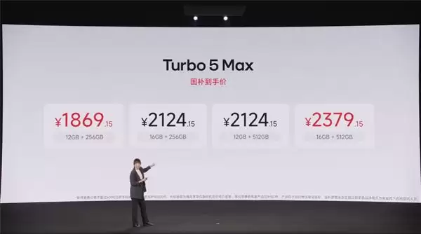 具体来看,Redmi Turbo 5 Max提供了多种存储组合选择:12GB+256GB版本售价2199元;16GB+256GB版本售价2499元;12GB+512GB版本售价2499元;顶配的16GB+512GB版本则为2799元。在官方补贴后,实际到手价最低可至1869.15元。