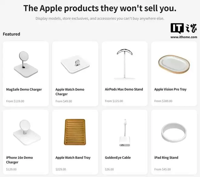 1月30日,据IT之家报道,科技媒体Mac World昨日(1月29日)发布消息称,一家名为AppleUnsold的澳大利亚在线零售商打破了苹果的销售限制,专门销售苹果最新未公开发售的演示用配件,其中涵盖了全新的MagSafe展示支架以及Apple Watch充电器等稀有物品。