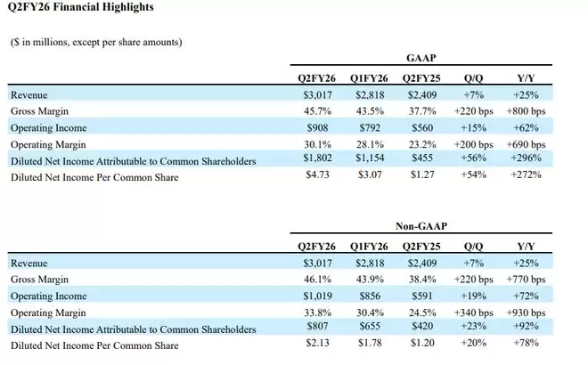 其他的利润数据方面,non-GAAP准则之下,这家企业级近线高容量HDD领军者第二财季调整后的每股收益(EPS)为2.13 美元,高于分析师们平均预期的约1.93 美元;non-GAAP准则的调整后净利润约为8.07亿美元,实现同比大幅增长92%,调整后的营业利润则高达10.19亿美元,同比增长约72%。GAAP准则下,西部数据第二财季营业利润约9.08亿美元,同比增长62%,净利润约18.02亿美元,同比基准下激增296%。