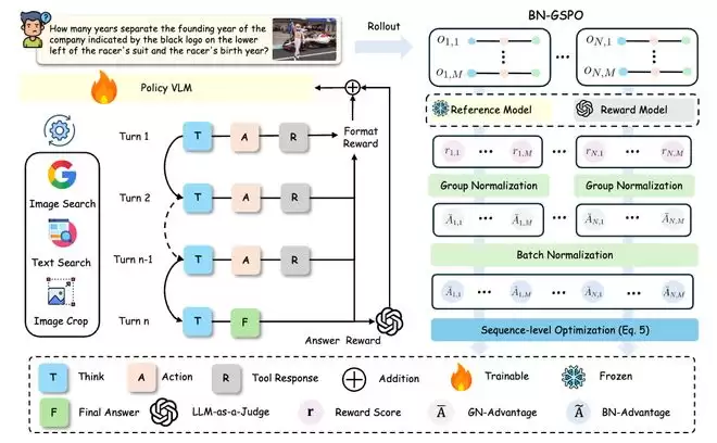这种基于双阶段归一化的机制可以平滑动态工具调用返回分布多样性带来的优化波动并确保学习信号分布的一致性,从而解决跨模态多步多工具智能体训练过程中的收敛性难题。