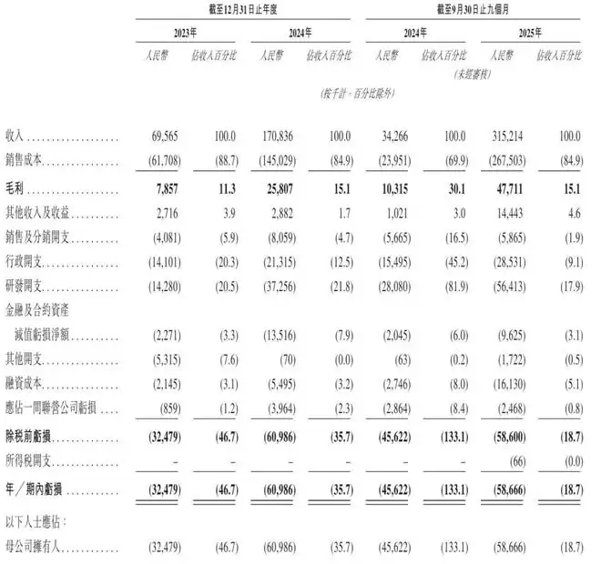 在2025年前九个月,伯镭科技实现营收3.15亿元,毛利为4771万元,期内净亏损为5867万元。