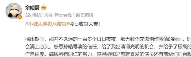 除了主角团之外,也有很多配角们都发文告别《小城大事》了。