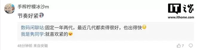 消息发布后,有网友在评论区调侃:“这更新节奏也太快了!”博主回复称:“产品线固定为一年两代,最近几代市场反响都很不错,推进速度自然就快了。”另一位用户则问道:“会有超大杯版本吗?比如用上3nm制程芯片,对标蓝厂的新款机型?”对此,博主并未给出明确回复。