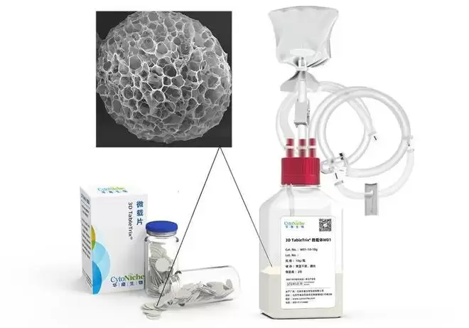通俗来讲,3D微载体是一种可降解的多孔微球,能为细胞提供三维生长空间。“2D培养就像把细胞放在马路边,3D微载体则是给细胞建了座立体家园。” 鄢晓君这样解释两者的区别。