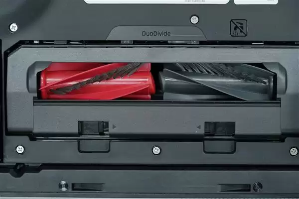 拖地系统升级四区双震拖布,4000次/min高频震动搭配14N下压力,阴角漏拖面积减少27%,100℃动态热水洗布+银离子抗菌,构建全链路卫生防护。机械臂边刷实现<1mm极限贴边,边角清洁无死角。