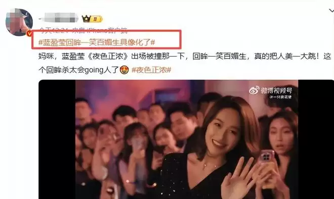 更令人惊叹的是,1月29日清晨,微博热搜榜赫然浮现话题#回眸一笑百媚生具象化了#,点开后满屏皆是蓝盈莹在剧中高光片段的精剪合集。