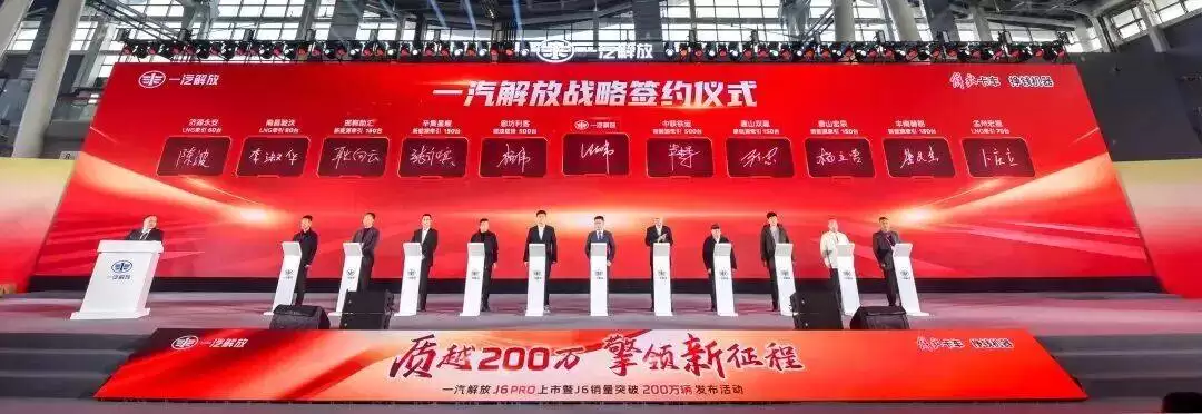 石家庄迎来一场商用汽车行业的盛会——一汽解放J6 PRO上市暨J6平台销量突破200万辆发布会在此隆重举行。活动现场,一汽解放营销总部、商用车开发院、长春中重型车产品线等单位领导,中汽新能代表、全国核心渠道伙伴、行业主流媒体以及众多解放用户齐聚一堂,共同见证这一具有里程碑意义的时刻。