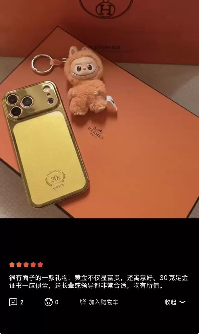 1月30日,据IT之家报道,京东在1月21日推出了一款Au99.99黄金手机壳,专为苹果iPhone 17 Pro Max打造。这款产品提供五种不同克重选择,起售价为11299元,上市后迅速售罄。