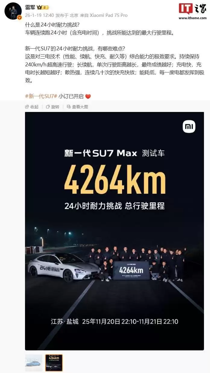 小米SU7 Max热管理系统升级,24小时耐力挑战狂飙4264km