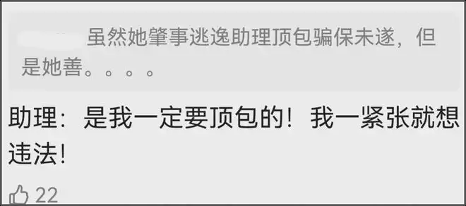该承担的事故责任还是助理担负,问就是“事发突然,情绪紧张”,网友都无语了,助理再紧张,也不会主动违法吧?