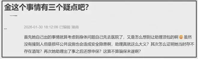 金晨的风波一共就涉及三件事,肇事逃逸、顶包、骗保。而金晨的回应全文都没有提及这三个关键词,反倒一直在辩解,网友纷纷开始质疑。