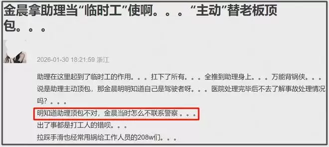 只能说,金晨的回应看似把自己摘得很干净,一个受伤较重就避开了逃逸顶包,但网友并不买账。况且从通报来看,事故三人都是“轻微受伤”,到金晨这就得进医院手术了。金晨手术了,经纪人呢?也没精力处理事故问题,放助理自己随意处置?