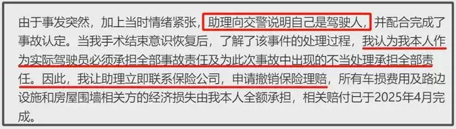 那为什么没有主动纠正这一错误?是否默认助理顶包?嘴上说着自己是实际驾驶者,“必须承担全部事故责任”,实际也只是赔钱了。