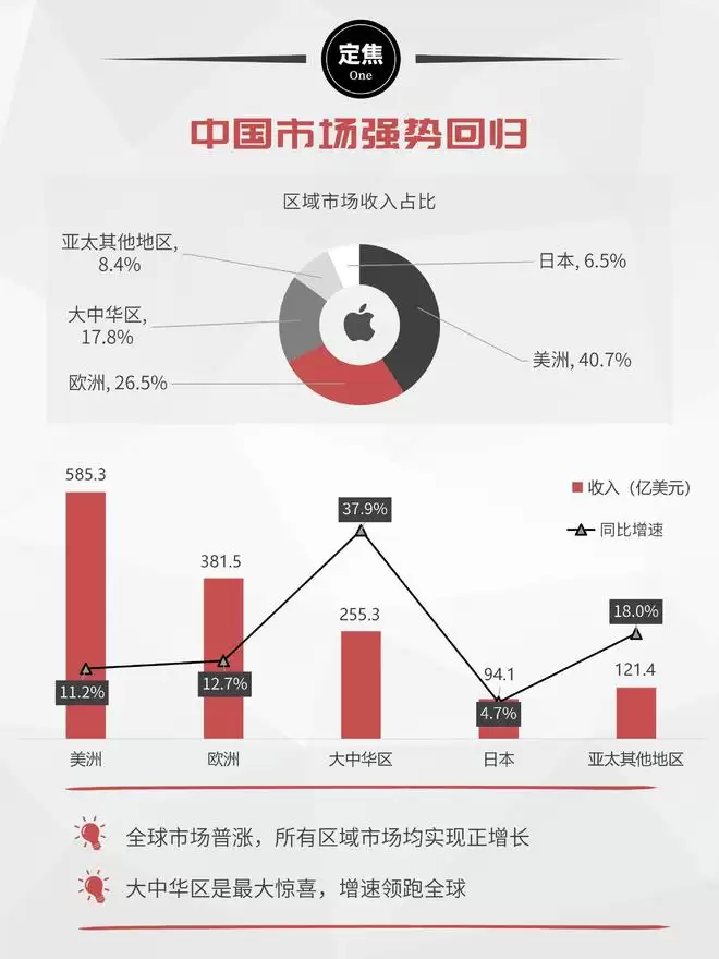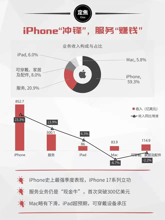 这份财报传递出几个明确的信号:iPhone销售重回增长轨道,中国市场强势复苏,服务业务的利润基石更加稳固。
