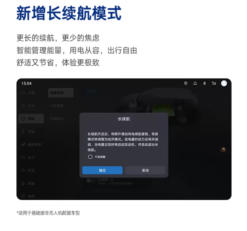 娱乐与交互功能同样得到丰富。系统新增了电子木鱼小游戏、多屏同步登录、音乐共享播放等功能,并上线多款裸眼3D动态主题,为车内乘客带来更多趣味体验。续航方面,新增的“长续航模式”通过优化能量管理策略,在CLTC工况下将纯电续航提升至最高230公里,满足长途出行需求。手机互联、智慧物联及语音控制系统也进行了细节优化,进一步提升用户体验。
