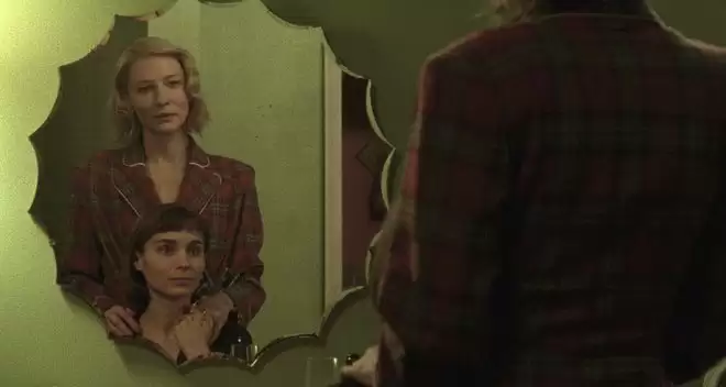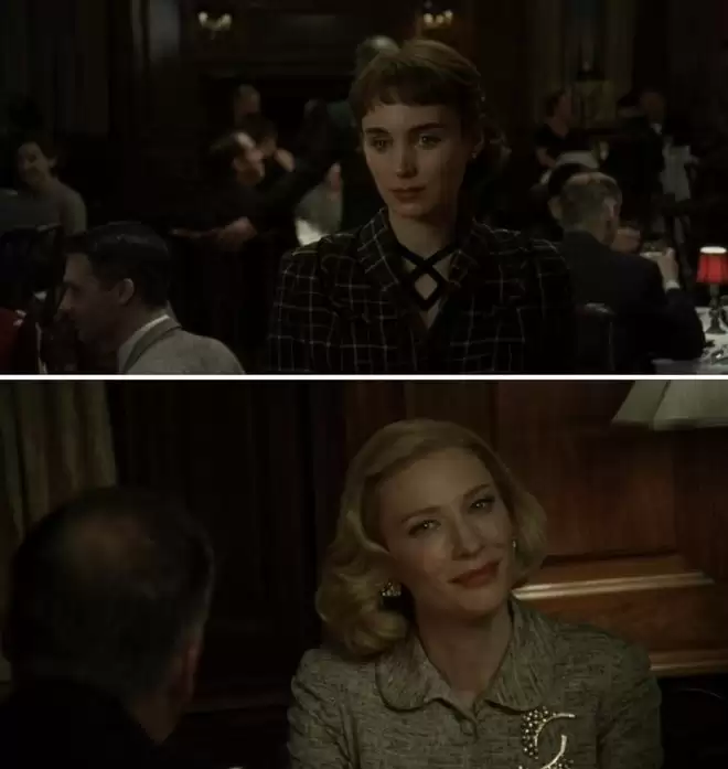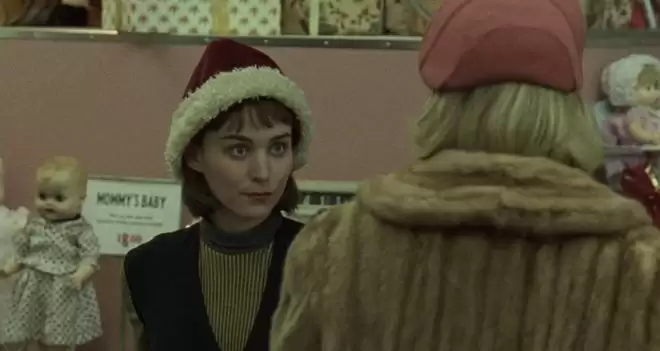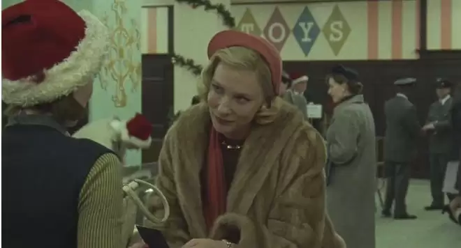 就在这样并不完美的曼哈顿,《卡罗尔》的两位主角因一次偶遇相识:特蕾丝(鲁妮·玛拉饰)在百货公司做店员,把一列玩具火车卖给卡罗尔(凯特·布兰切特饰),让她带回去当作送给女儿的圣诞礼物。