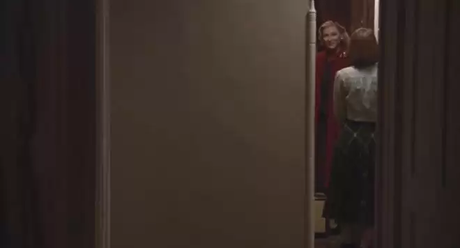 这段对话发生在百货公司这个典型的女性空间里——而且还是娃娃柜台——几乎直接把影片放进了女性的世界。男性徘徊在外围;当他们试图闯入卡罗尔与特蕾丝亲密共享的空间时,两位女性都理所当然地把这种介入视作不受欢迎的打扰。