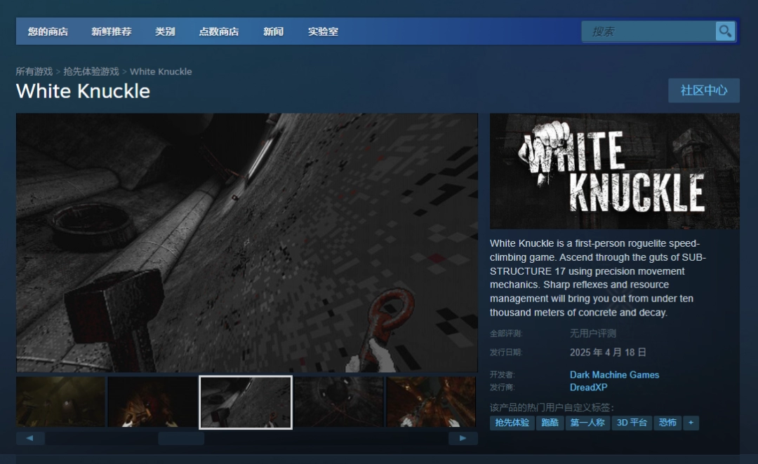 《White Knuckle》是由 Dark Machine Games 开发、DreadXP 发行的第一人称跑酷游戏。要获取这款游戏,玩家只需前往其官方购买平台,例如 Steam,在商品页面完成购买流程后,点击页面中的“立即开玩”按钮即可开始下载。