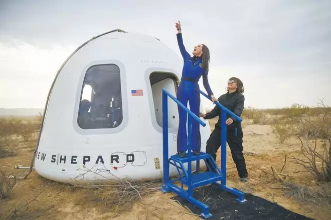 另一家美国太空旅游项目公司蓝色起源的“新谢泼德”垂直起降火箭,可携带6人自动飞行。该项目全程飞行时间约10分钟,其中有4分钟体验太空失重。2024年7月20日,蓝色起源创始人杰夫·贝索斯参与首次载人试飞,飞行高度107公里。2026年1月22日,该公司完成第17次载人飞行,目前已累计将98人次送入太空。