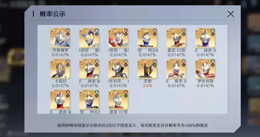 迪迦、奈克瑟斯与芝顿仅能通过概率抽取获得