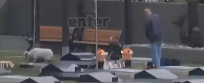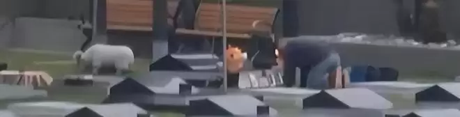 接着他从后备箱拿出坐椅,手里提着鲜花与一些用品。