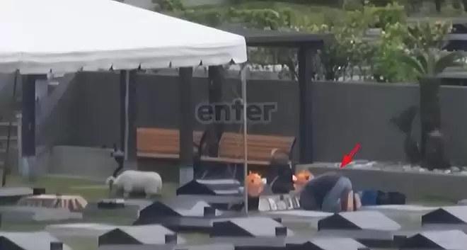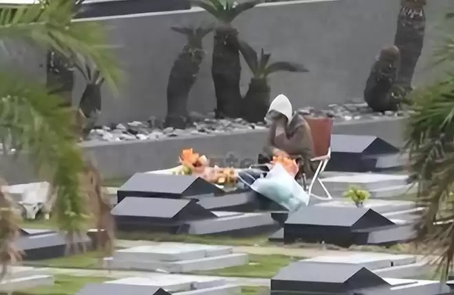 紧接着就是直接跪在墓碑前掩哭不动,整个跪着哭泣的动作持续了大概2分钟。