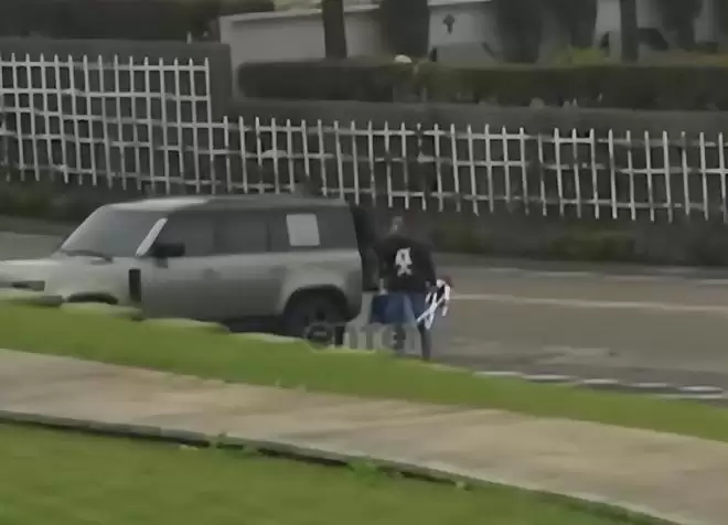 媒体远远拍摄到具俊晔,将车子开到墓园的大路边停好。