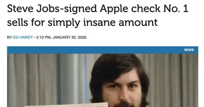 外媒认为,这张支票绝非普通的支付凭证,它见证了苹果公司从概念构思迈向实体产品的关键一步,承载着苹果早期发展的珍贵记忆。(青山)
