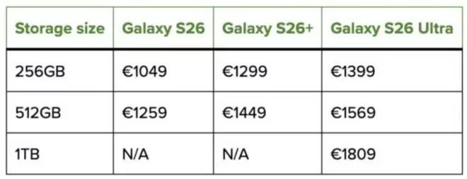 最后聊聊最敏感的价格,据欧洲供应链消息,三星这次采取了两极分化策略,三星S26标准版因为取消128GB、全系256GB起步,再加上存储芯片涨价,起售价可能比S25贵100-200欧元,国行版预计5999元起步。