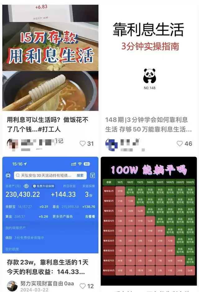 “稳学家”实践“用利息生活”的挑战,相关话题在小红书上的浏览量数以亿计。实现“奶茶自由”或“早餐自由”代表的不是节衣缩食,而是一种“睡后收入”的掌控感,让年轻人平添了些许生活的底气。