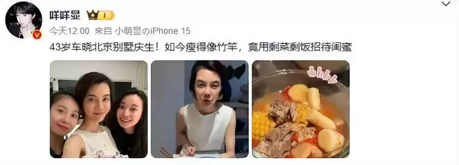 让人纳闷的是她明明住在北京价值不菲的独栋别墅里,庆生却用剩菜剩饭招待闺蜜。