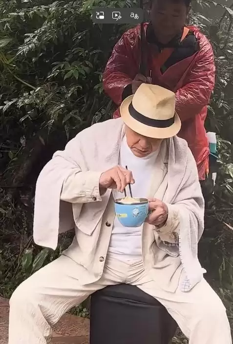 没等网友消化完这份 “接地气”,画面突然切到山里,他捧着个粗瓷碗蹲在石阶上嗦面,面条沾着酱汁挂在嘴角都没在意,还对着镜头晃了晃碗: