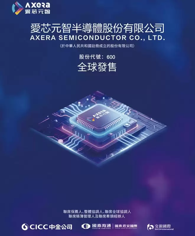 智东西2月2日报道,1月30日,中国边缘AI芯片独角兽企业爱芯元智启动全球招股,预计于2月10日在香港联交所挂牌上市。该公司拟全球发售约1.05亿股H股,其中中国香港发售股份1049.16万股,国际发售股份9442.36万股。