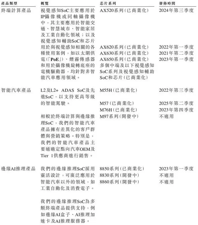 根据招股书,截至2025年9月30日,爱芯元智累计交付量已突破1.65亿颗SoC,已独立开发五代SoC(即AX630A、AX620A、AX650N、AX620E及AX520C系列)并实现商业化。