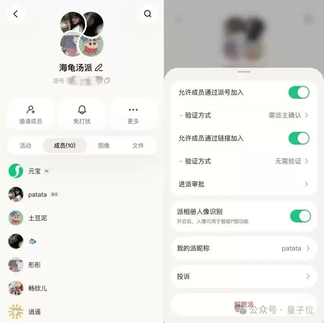 在元宝派的管理后台,派主可以开启“进派审批”,设置“消息免打扰”;