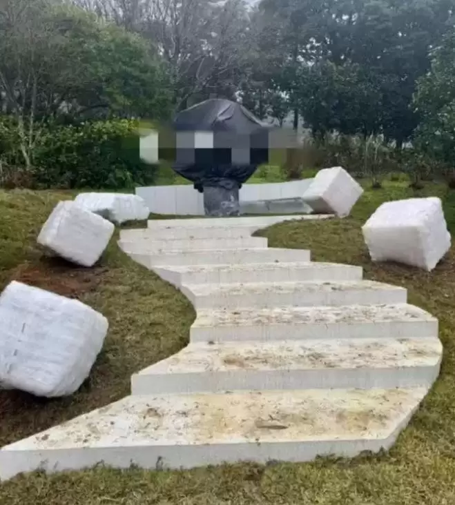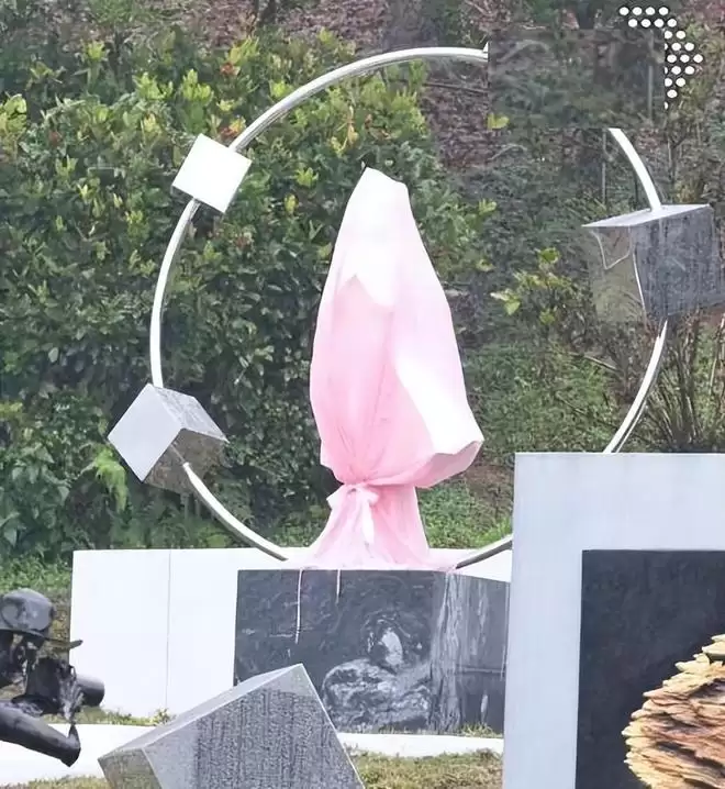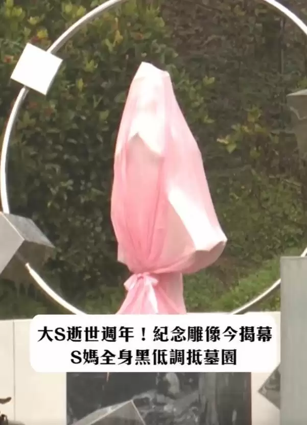 目前,大S的雕像上面那一块黑色的布已经揭开了。但雕像上面还盖着一块粉色的布。