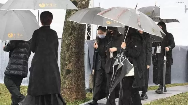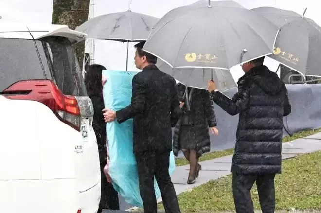 现场的天气不太好,下着小雨。和大S骨灰安葬当天的情况一样,也许老天爷也为其落泪吧。
