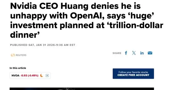 《华尔街日报》此前曾报道,由于英伟达内部部分人士对这笔交易心存疑虑,该计划一度陷入停滞。黄仁勋近几个月私下向业内同行强调,最初那份1000亿美元的协议不具备约束力,最终方案尚未敲定。