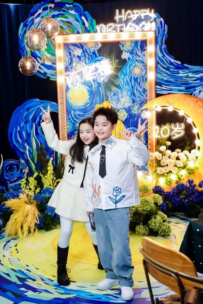 在朵朵生日宴上,安排了很多有趣的环节。朵朵和小酒窝一起拓印,俩孩子都很认真,尤其是小酒窝动作小心、颇有大家闺秀的气质。