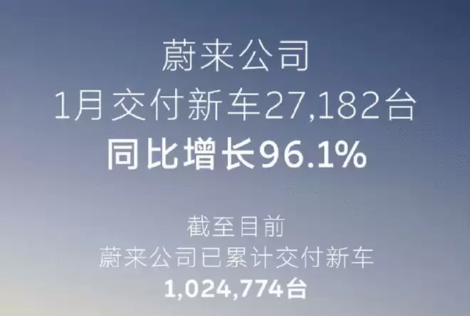 蔚来1月交付新车27381台,全新ES8累计交付突破6万辆