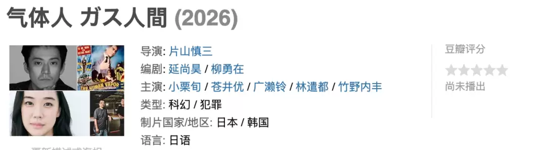 网飞出品,小栗旬携手苍井优联袂主演的科幻剧《气体人》预计将在今年开播。