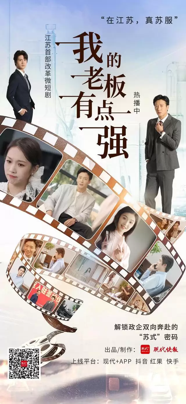 近日,由现代快报出品并制作的江苏首部改革微短剧《我的老板有点强》,正在现代+APP、红果、抖音、视频号、快手等平台热播,其中红果平台热度1100万+。短剧以海归博士强毅归国创业为主线,巧妙融入江苏优化营商环境的改革政策和实践,将严肃的改革叙事与轻松的解压短剧相结合,既体现出商业赛道的激烈角逐,更藏着政策落地的细腻温情,成为“政务类微短剧探索精品化路径”的典型案例,也是“破圈”传播的成功尝试。
